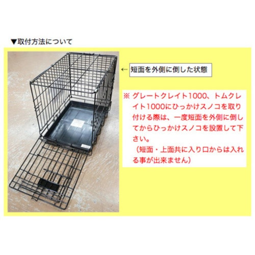 網スノコひっかけタイプを取り付ける際は、一度トムクレイトの短面を外側に倒してからスノコを設置してください。トムクレイトの扉からは入れる事が出来ません。