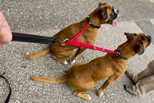 - ショック吸収機能付2頭引き用延長リード。