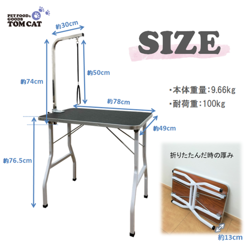 - 組み立て簡単で、収納にも便利な折りたたみ式トリミングテーブル。愛犬や愛猫の シャンプー 後のドライや被毛のカットなどの トリミング に適しています。