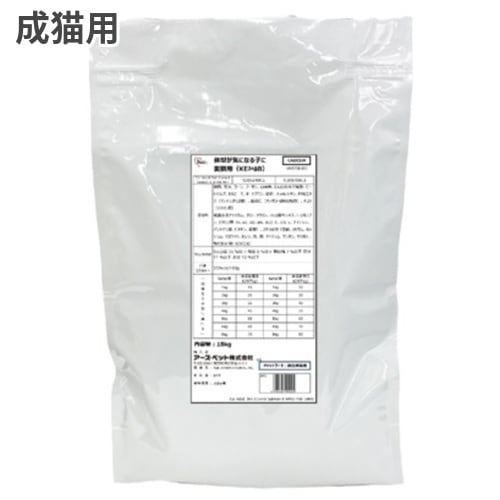 鶏肉、玄米、コーン、サーモン、白身魚、たん白加水分解物、ビートパルプ、セルロース、オートブラン、鶏脂、大豆レシチン、酵母エキス(マンナンオリゴ糖)、亜麻仁(オメガ3・6脂肪酸源)、チコリ(イヌリン源)、硫酸水素ナトリウム、コリン、タウリン、ユッカ抽出エキス、L-カルニチン、ビタミン類(A、B1、B2、B4、B12、C、D3、E、ナイアシン、パントテン酸、ビオチン、葉酸)、ミネラル類(亜鉛、カリウム、カルシウム、クロライド、セレン、鉄、銅、ナトリウム、マンガン、ヨウ素)、酸化防止剤(ビタミンE)