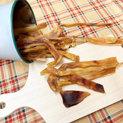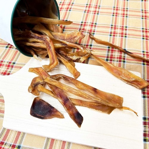 - コラーゲンがたっぷりの豚の耳です。噛み応え、嗜好性のあるワンちゃん大好きなおやつです。