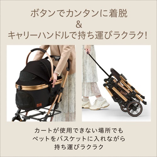 - バスケットを簡単に付け外しでき、1台でカート・キャリー・ハウスとしておでかけ先での場面ごとに使い分けが可能。 ネコちゃんのおでかけにも!犬猫兼用。