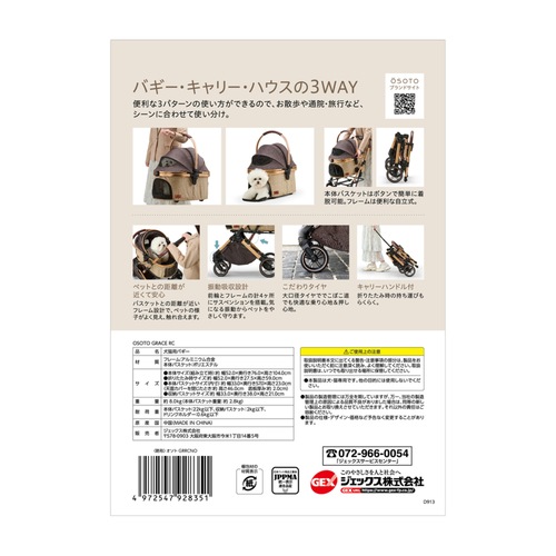 - バギー・キャリー・ハウスの3WAY 便利な3パターンの使い方ができるので、お散歩や通院・旅行など、シーンに合わせて使い分け。