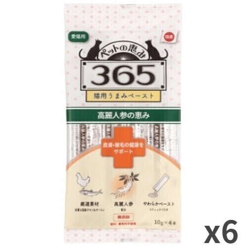 【メール便・配送日時指定不可】 新東亜交易 ペットの恵み365 猫用うまみペースト 皮膚・被毛の健康をサポート 猫おやつ 10g×4本 ×6袋入