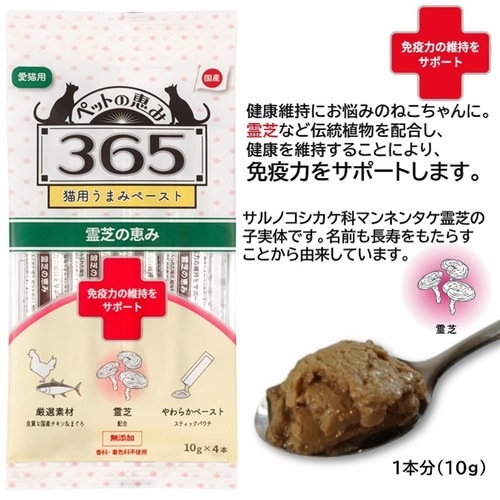 【メール便・配送日時指定不可】 新東亜交易 ペットの恵み365 猫用うまみペースト 免疫力の維持をサポート 猫おやつ 10g×4本 ×6袋入