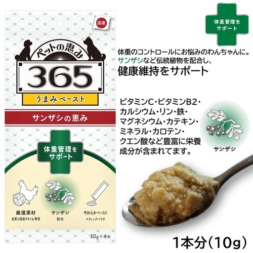 【メール便・配送日時指定不可】 新東亜交易 ペットの恵み365 犬用うまみペースト 体重管理をサポート 犬おやつ 10g×4本 ×6袋入