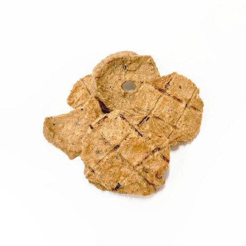 - 北海道産のサーモンの身、皮、内臓、骨を全てミンチ後チップ状に形成しました。