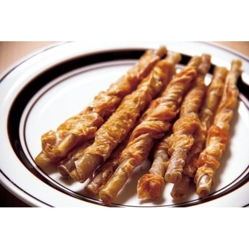 - 鶏肉の中でも低脂肪なササミを長く噛んで味わい楽しめるように牛皮に包みました。