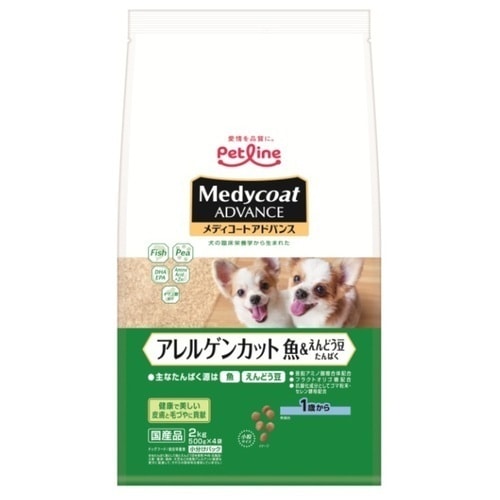 【訳あり】 ペットライン メディコートアレルゲンカット 魚&えんどう豆たんぱく 1歳から 小粒 成犬用 ドッグフード 2kg