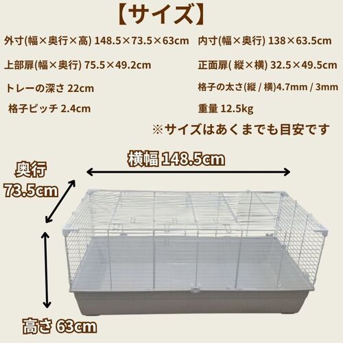 格子ピッチをご確認ください。幼い時期の動物の体格によっては、すり抜けてしまう場合がございます。