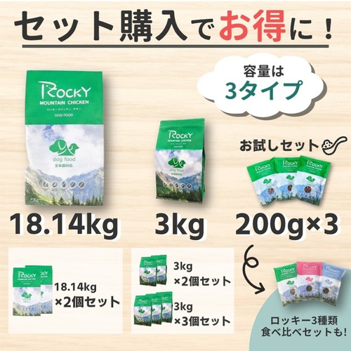 - ロッキーマウンテン チキンはチキンを第一主原料とし、健康な体の維持や理想的な成長をサポートするための良質なたんぱく質、アミノ酸、ミネラルを豊富に含んだドッグフードです。