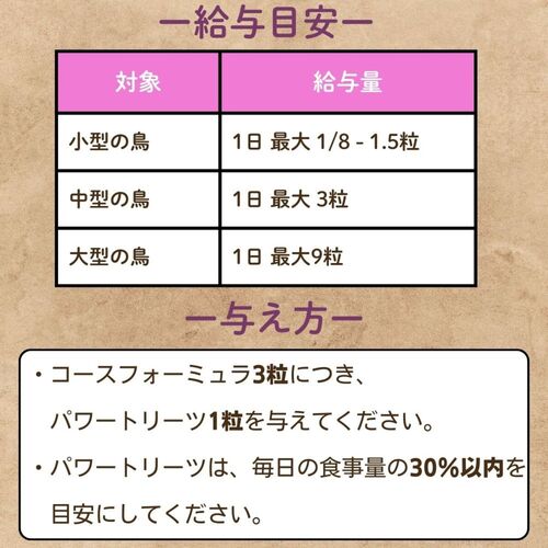 - 鳥類の健康を念頭に置いた鳥獣医師や栄養士によって作られた、USDA(米国農務省)認定のオーガニック素材配合の製品です。