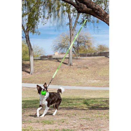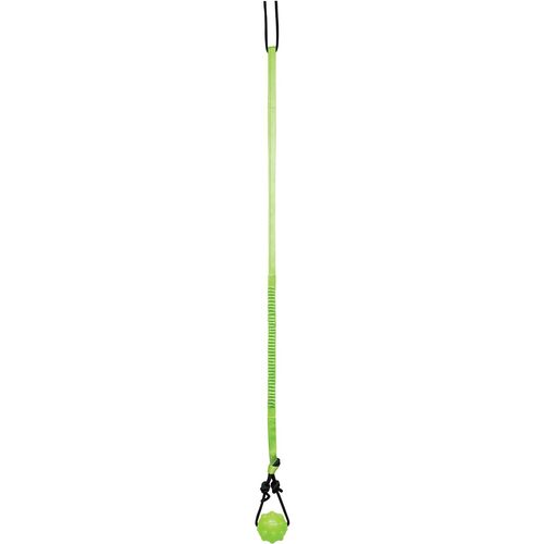 - 丈夫なバンジーテープの先に、付属のラテックスボールか、愛犬が好きなおもちゃを付けます。