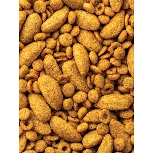 トウモロコシ、小麦ミドリング、大豆ミール、コーングルテンミール、亜麻仁、大豆油、リン酸二カルシウム、炭酸カルシウム、小麦胚芽ミール、ビール酵母、プロピオン酸カルシウム(保存料)、塩、DL-メチオニン、L-リジン、乾燥ラクトバチルス・アシドフィルス発酵物、L-アスコルビン酸-2-ポリリン酸、乾燥ラクトバチルス・カゼイ発酵物、塩化コリン、乾燥ビフィドバクテリアムサーモフィラム発酵物、ビオチン、塩酸ピリドキシン、乾燥エンテロコッカス・フェシウム発酵物、β-カロチン、アルファ酢酸トコフェロール、メナジオンナトリウム重亜硫酸塩複合体(ビタミンK)、混合トコフェロールにて保存、コレカルシフェロール、ローズマリーエキス、葉酸、ビタミンA酢酸塩、クエン酸(保存料)、カンタキサンチン、酸化マンガン、リボフラビン、アステカマリーゴールドエキス、ヨウ素酸カルシウム、酸化亜鉛、チアミン硝酸塩、パントテン酸カルシウム、ニコチン酸、ビタミンB12サプリメント、硫酸銅、硫酸亜鉛、炭酸コバルト、セレン酸ナトリウム
