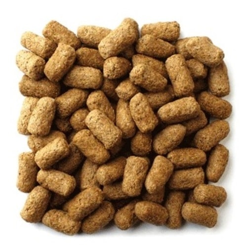 大豆皮、トウモロコシ、大豆ミール、オーツ麦、小麦ミドリング、茎糖蜜、乾燥アルファルファ、小麦胚芽ミール、リン酸ニカルシウム、大豆油、ビール酵母、炭酸カルシウム、塩、DL-メチオニン、塩化コリン、塩酸ピリドキシン、アルファ酢酸トコフェロール、コレカルシフェロール、ビオチン、メナジオンナトリウム重亜硫酸塩複合体(ビタミンK)、パントテン酸カルシウム、酸化マンガン、酸化亜鉛、炭酸鉄、ビタミンA酢酸塩、混合トコフェロールにて保存、葉酸、リボフラビン、ローズマリーエキス、ニコチン酸、ビタミンB12サプリメント、チアミン硝酸塩、クエン酸、硫酸銅、L-リジン、硫酸亜鉛、ヨウ素酸カルシウム、セレン酸ナトリウム、炭酸コバルト