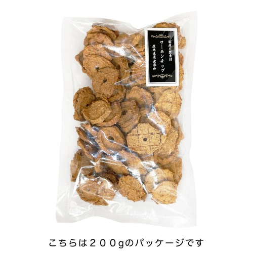 - 北海道産のサーモンの身、皮、内臓、骨を全てミンチ後チップ状に形成しました。