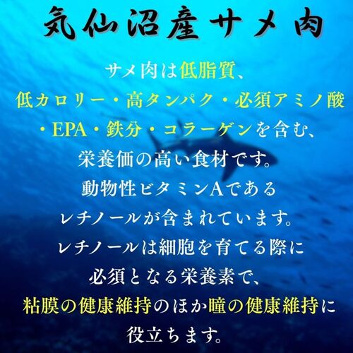 - サメ肉にはビタミンAなども含まれますので、瞳、皮膚や粘膜の健康維持をサポート。