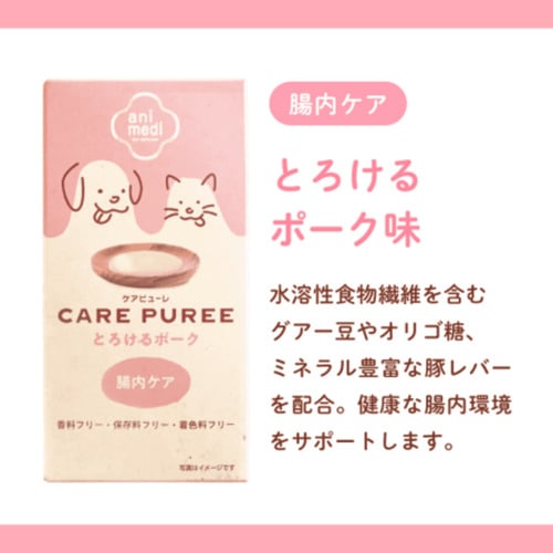 - 愛犬・愛猫の健康が気になりだした飼い主様におすすめの、腸内ケアができるピューレ。